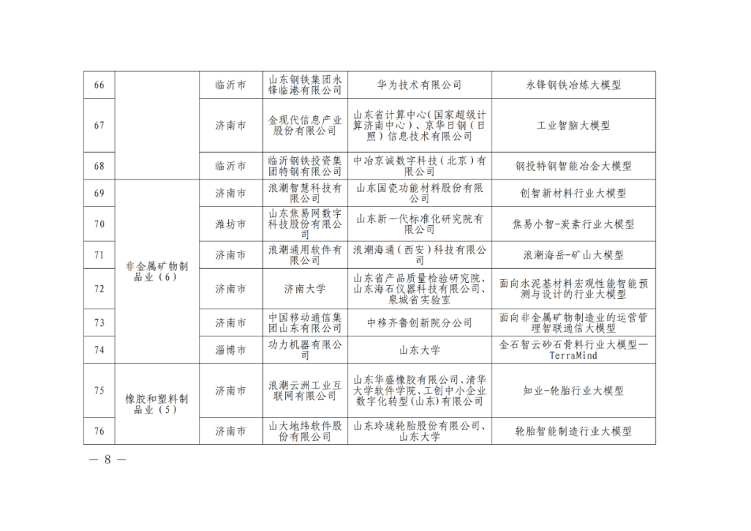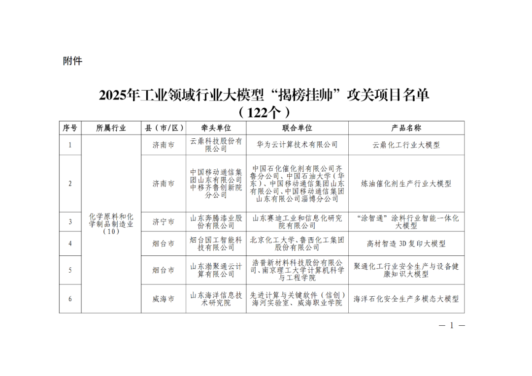 122个入选!山东2025年工业领域行业大模型“揭榜挂帅”攻关项目名单公示