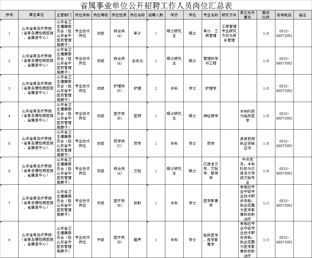 根据省委组织部、省人力资源社会保障厅《关于2019年省属事业单位公开招聘工作人员有关问题的通知》(鲁人社发[2018]66号)要求,结合工作需要,我院拟面向社会公开招聘工作人员9名,其具体岗位及条件详见