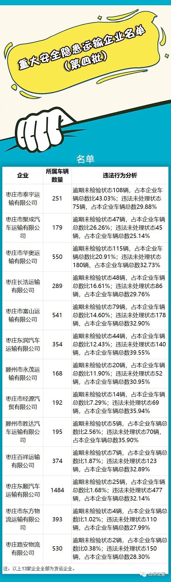 曝光!山东13家重大安全隐患运输企业被曝光