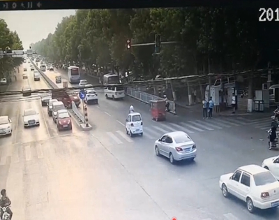 费县一男子酒后驾驶电动三轮车撞倒了人,不但不停车,还选择逃跑。路口执勤交警上前追赶想阻止三轮车离开没有成功,情急之下那名执勤人员爬上了三轮车车顶,而三轮车仍旧向前继续行驶。