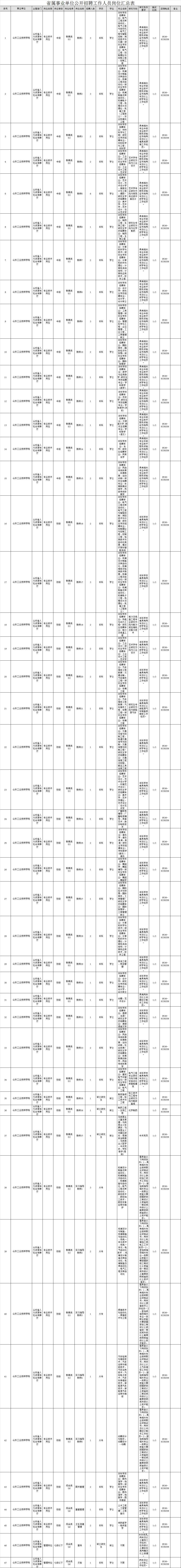 根据省委组织部、省人力资源社会保障厅《关于2019年省属事业单位公开招聘工作人员有关问题的通知》要求,结合工作需要,我校拟面向社会公开招聘工作人员47名,全部为专业技术岗位。具体岗位及条件详见