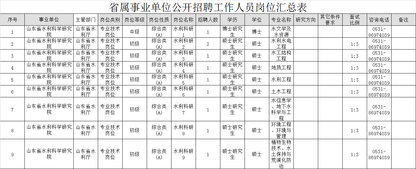 7月23日,山东省人社厅在官方网站发布山东省水利科学研究院等三家省属事业单位2019年公开招聘工作人员简章。
