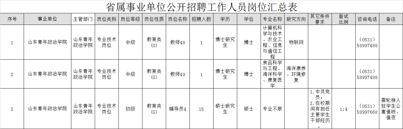 7月25日,山东省人社厅在官方网站发布山东青年政治学院等两家省属事业单位2019年公开招聘工作人员简章。