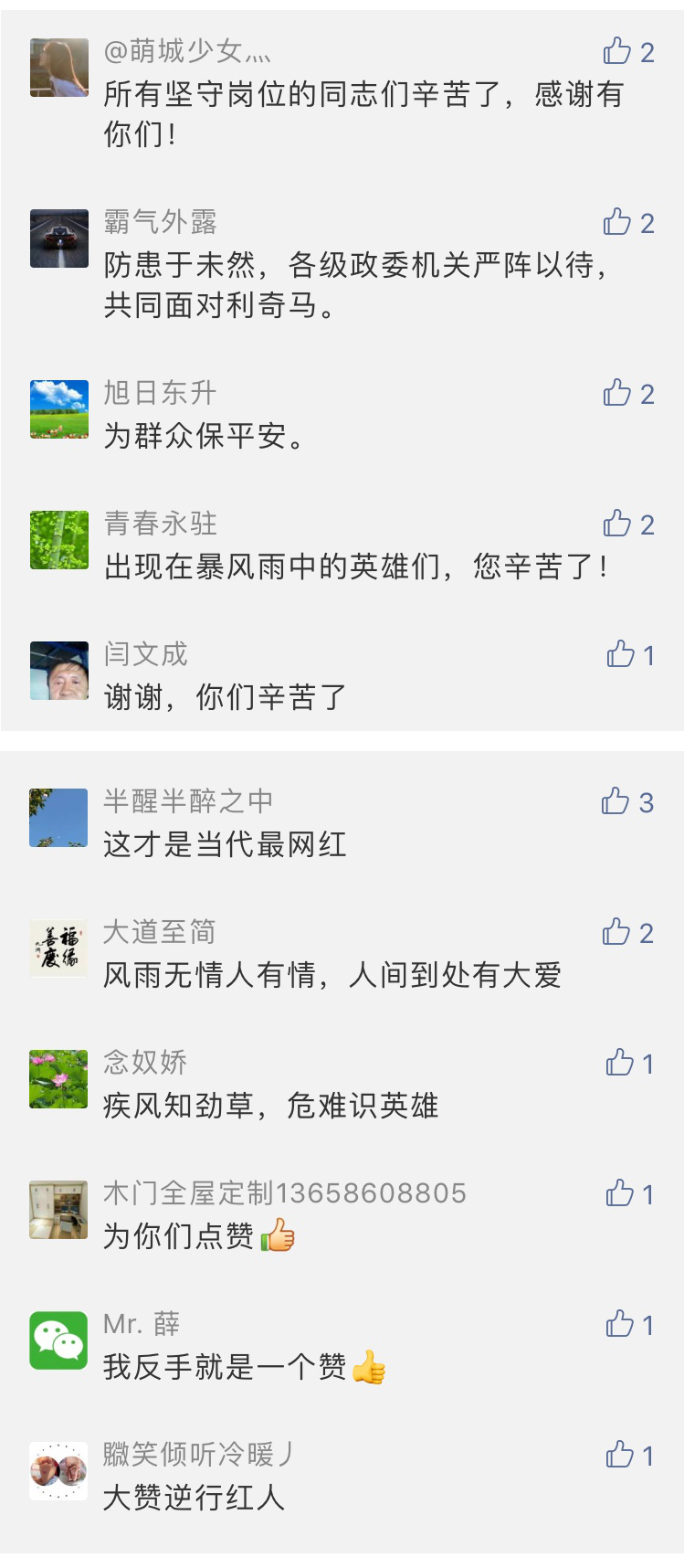 近日,受9号台风“利奇马”影响,山东部分地区出现大暴雨、局部地区特大暴雨。8月12日中午,“利奇马”仍在山东地域造成持续影响,给当地人民群众生命财产安全带来威胁,同时雨情灾情也牵动着全国人民的心。各地网友在各类平台的新闻报道下方纷纷留言,向奋战在灾情一线的干部群众点赞,为遭受灾情的当地群众祈祷平安。