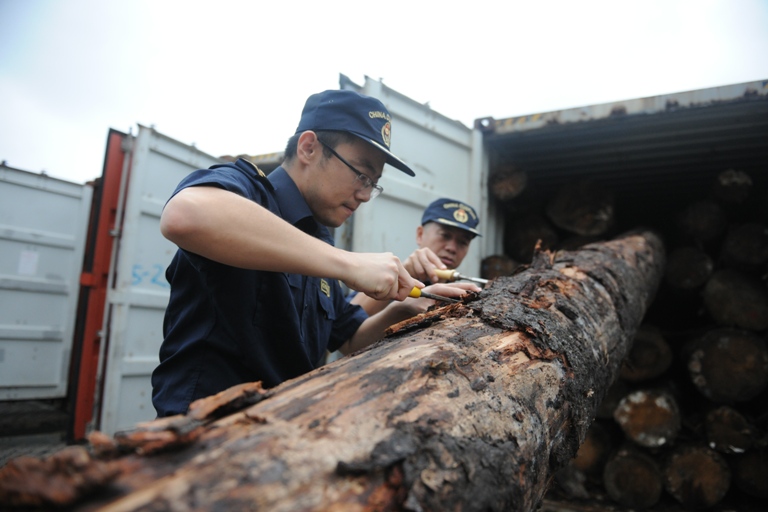 (海关关员对进境木材实施现场检疫)