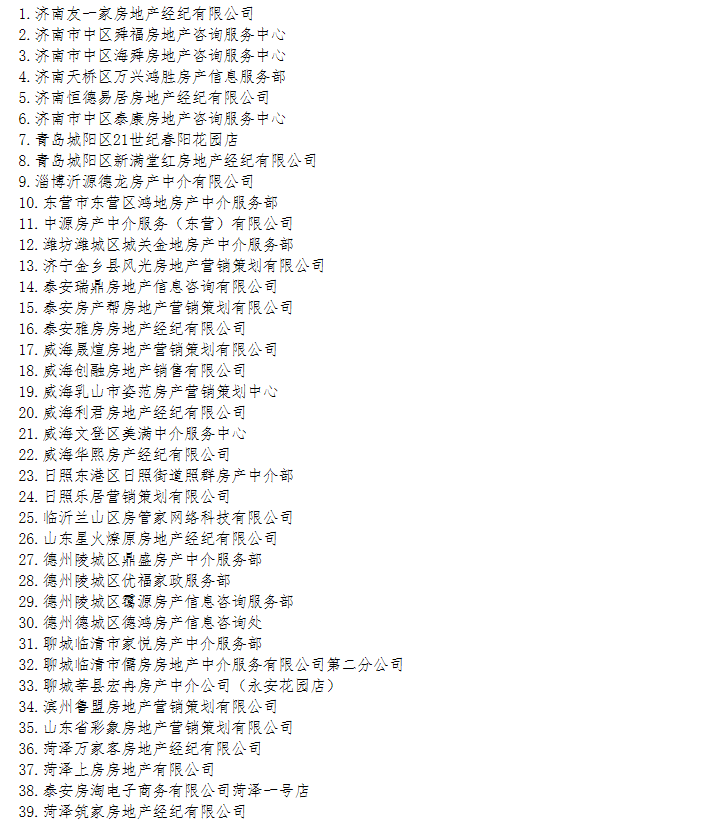 山东公布第三批违法违规房地产中介机构 济南友一家等39家上榜