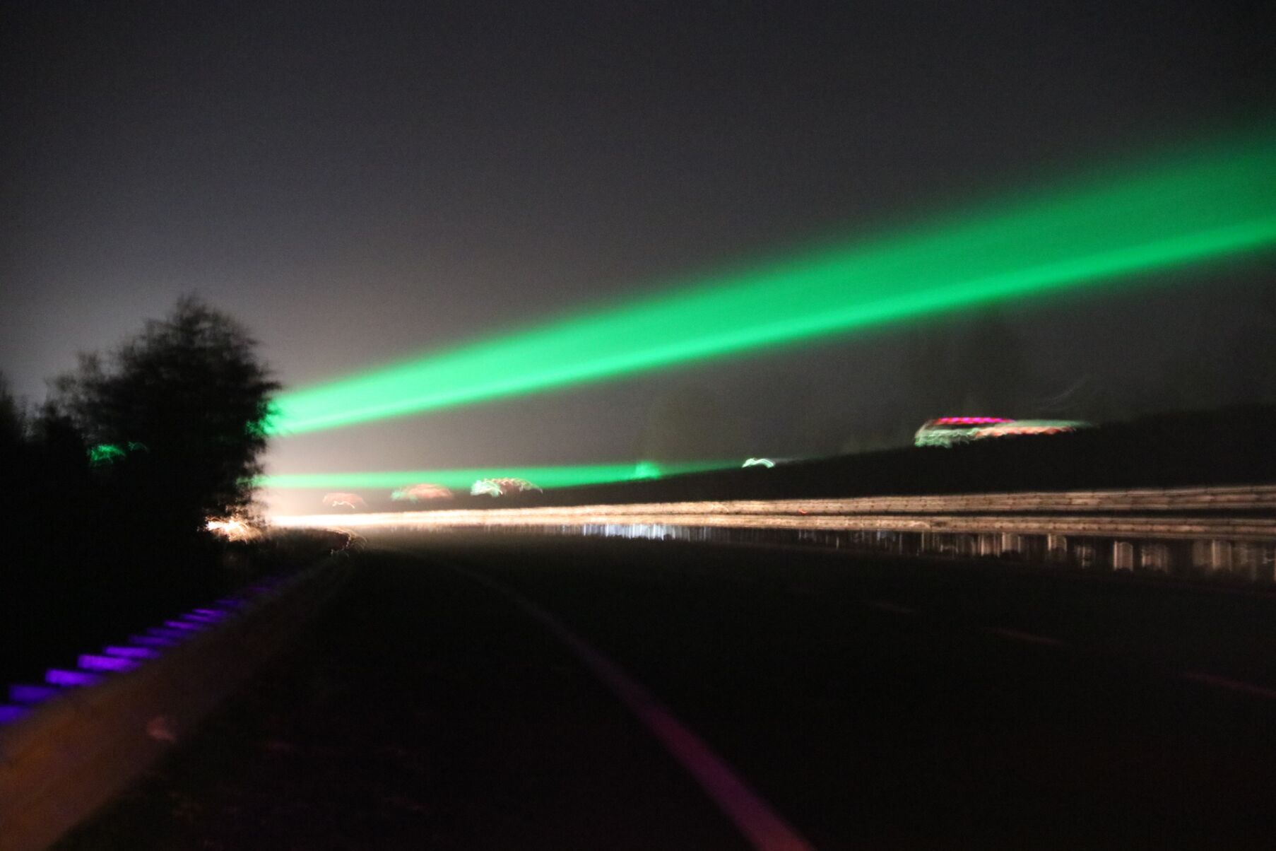 这两天晚上开车经过济聊高速聊城到冠县段的驾驶员朋友会注意到,每行驶没多远,在高速路面上空就会出现一片亮丽的景象——一道道绿色的激光束从行车道上空铺开,驾驶员仿佛开车置身光茫四射的舞台,一时间困意全无,这便是聊城高速交警为减少司机夜间疲劳驾驶现象,新启用的高科技“防疲劳激光光幕”,专治路上各种疲劳驾驶,在全省尚属领先。