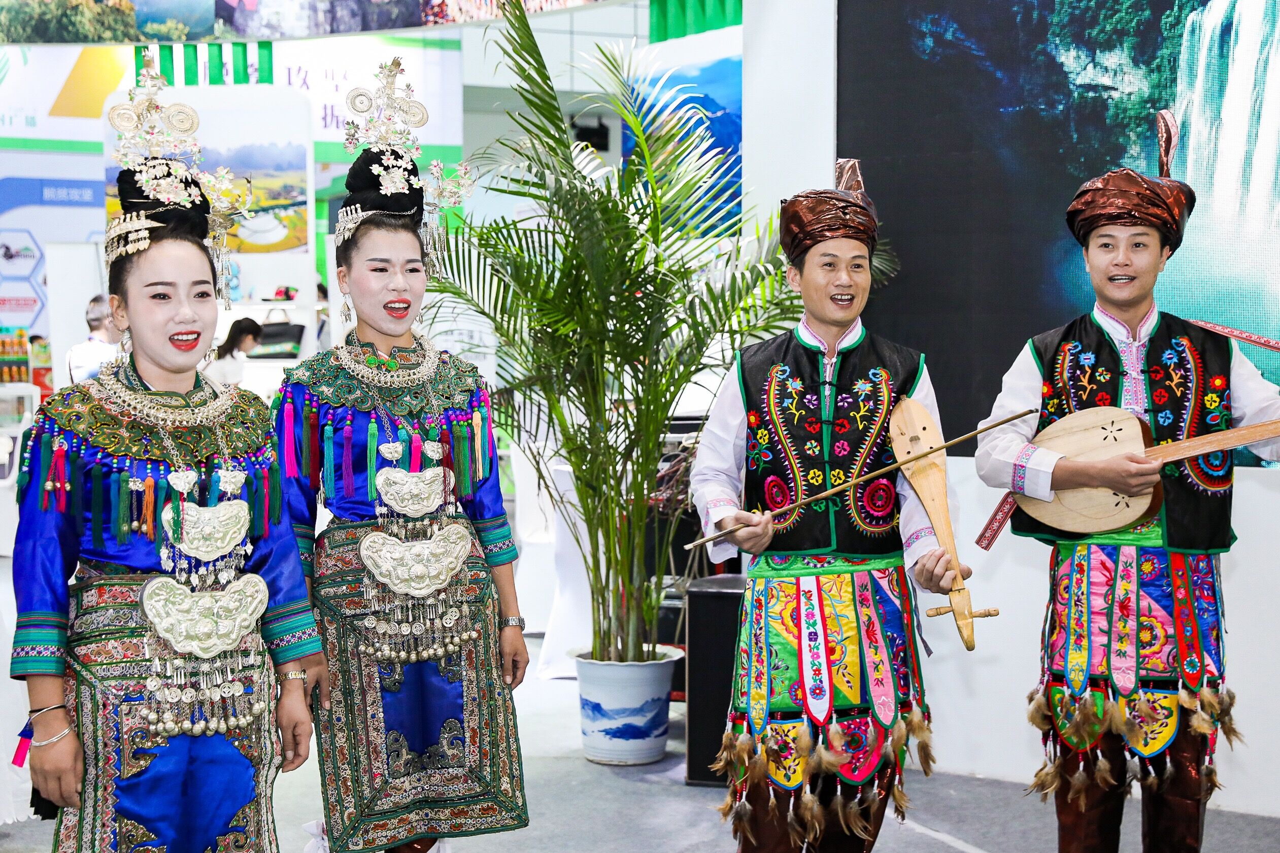同样别出心裁的还有贵州省的展位,这次展会贵州省文旅部门组织黔东南西江千户苗寨、黔西百里杜鹃等多家景区前来参展,并且把银饰、蜡染、刺绣、茶叶等带到了现场。