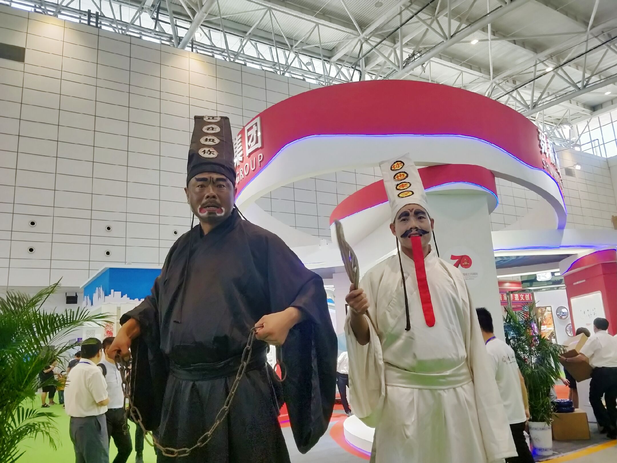 现场,两米多高的“黑白无常”引得现场的人停下脚步观看,两位演员踩着高跷,分别穿着黑色和白色的服饰,手执铁链、折扇,在展馆内行走。原来,这是重庆市丰都县丰都鬼城景区设计的宣传推广形式,“我们把平时景区内设置的角色带到展会上来,以这样的形式吸引更多的人了解。”丰都鬼城景区的负责人解释。