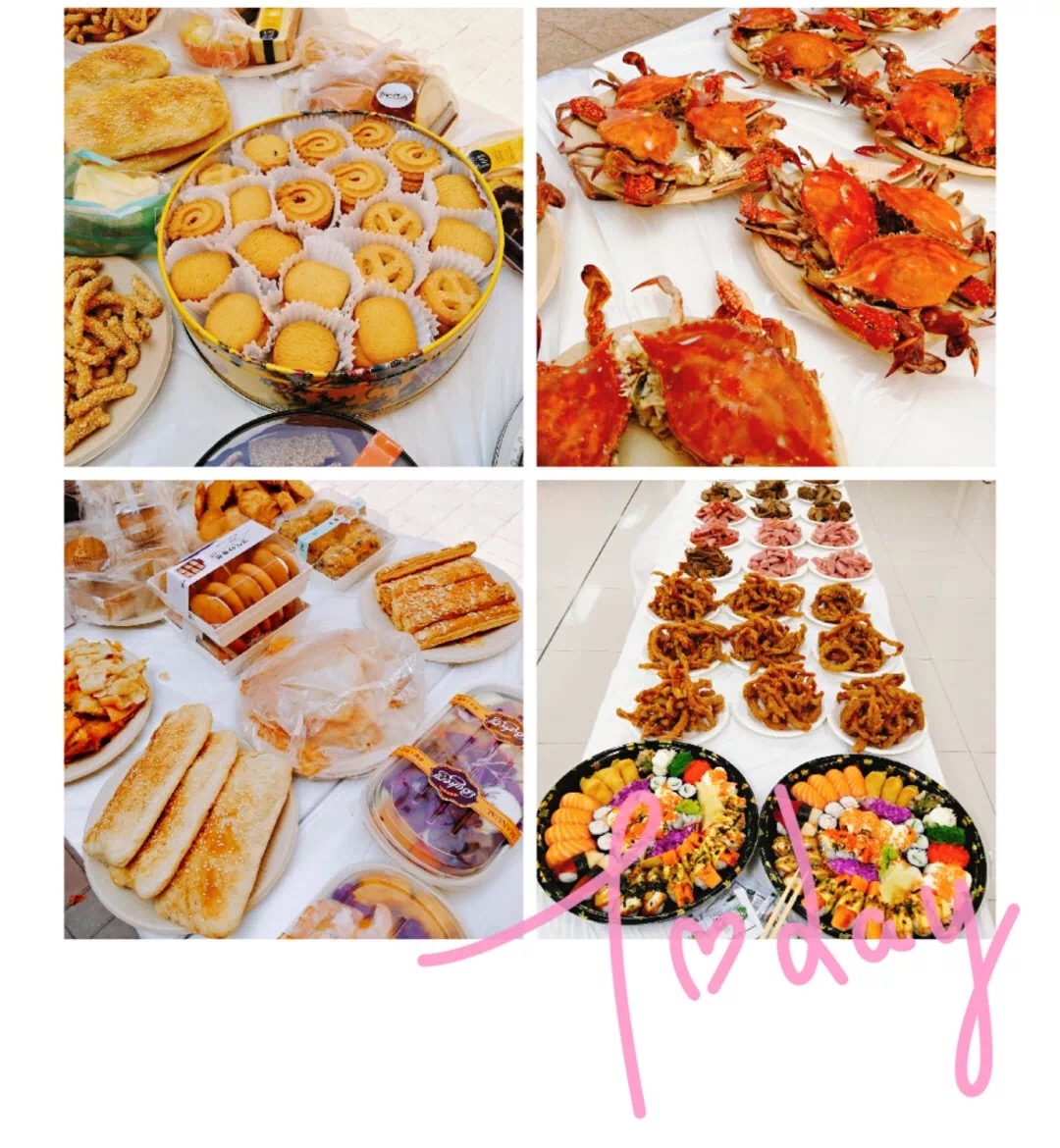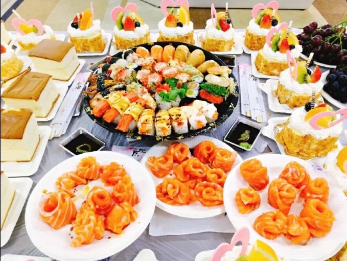 蛋糕、寿司、水果、大螃蟹