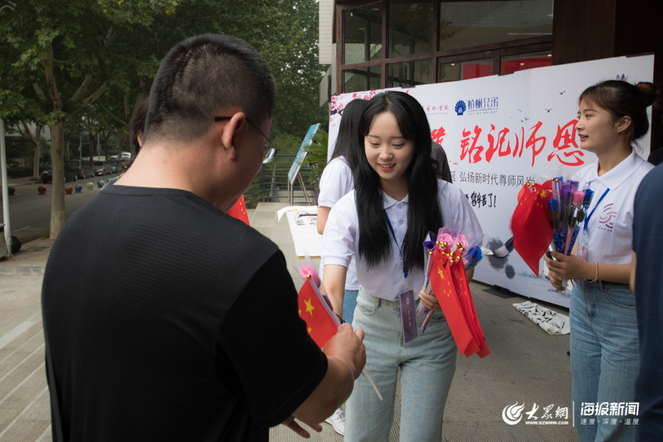 大众网·海报新闻济南9月10日讯(记者 毕胜 孙博洋)午餐时间,当老师们纷纷步入餐厅,迎面而来的是一朵朵美丽的鲜花与一句句温馨的祝福。