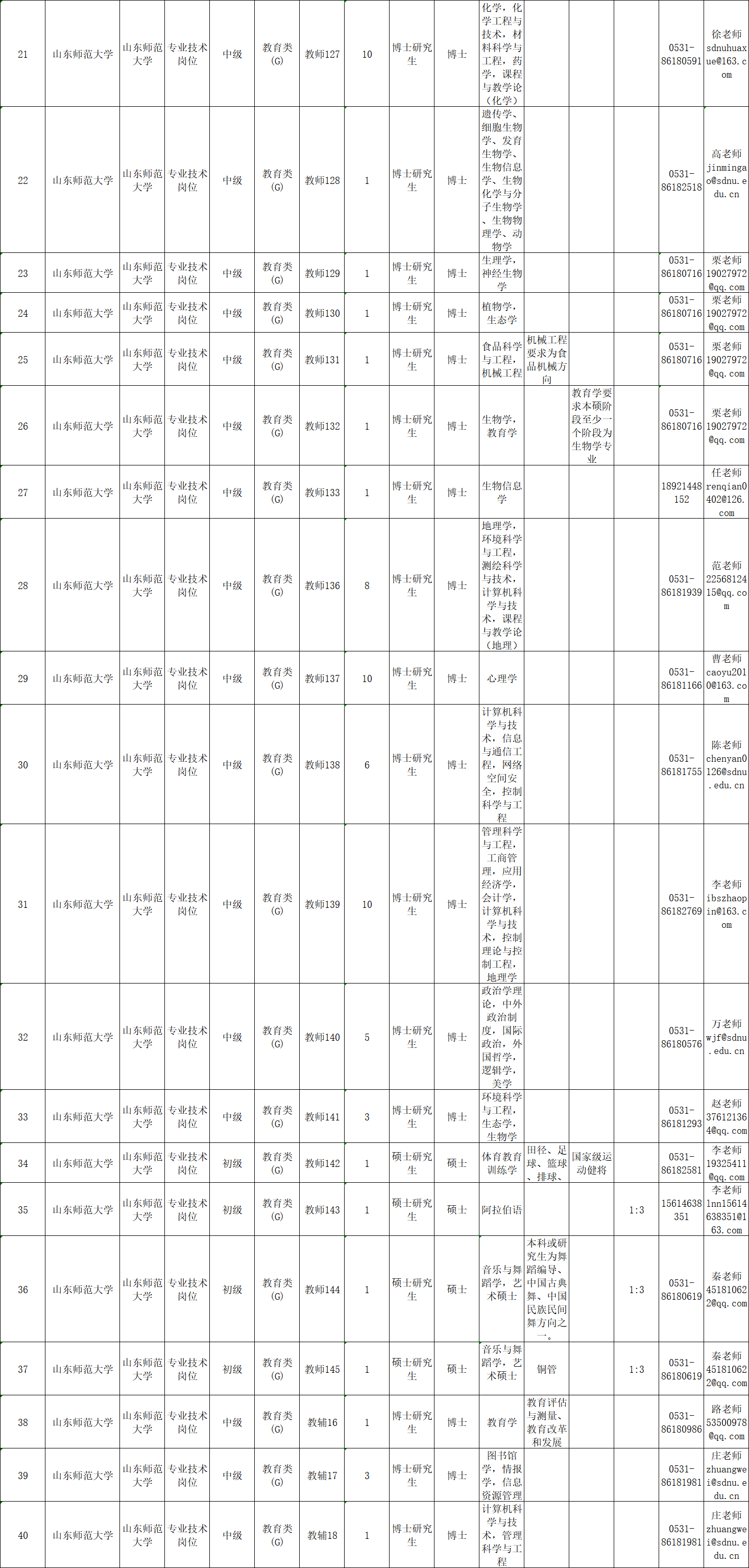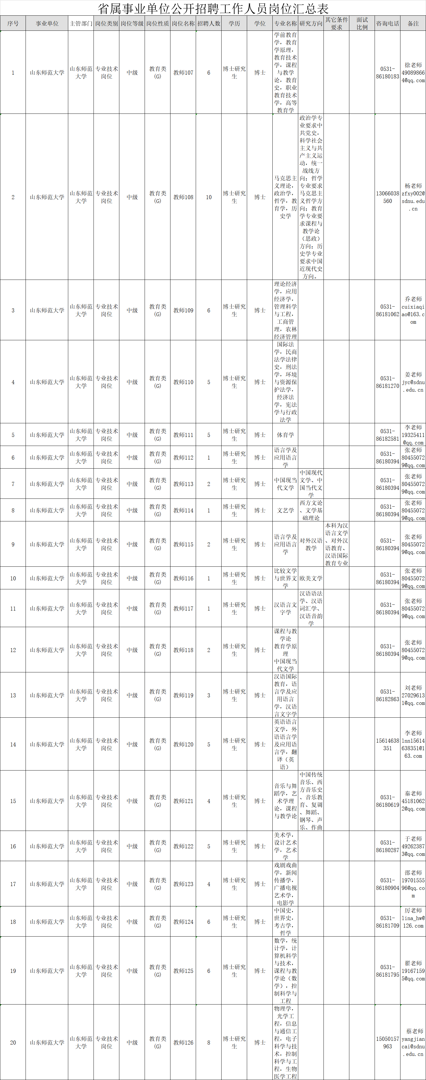 根据省委组织部、省人力资源社会保障厅《关于2019年省属事业单位公开招聘工作人员有关问题的通知》(鲁人社发〔2018〕66号)要求,结合工作需要,山东师范大学拟面向社会公开招聘工作人员150名,其中,初级岗位4名,中级岗位146名。具体岗位及条件详见: