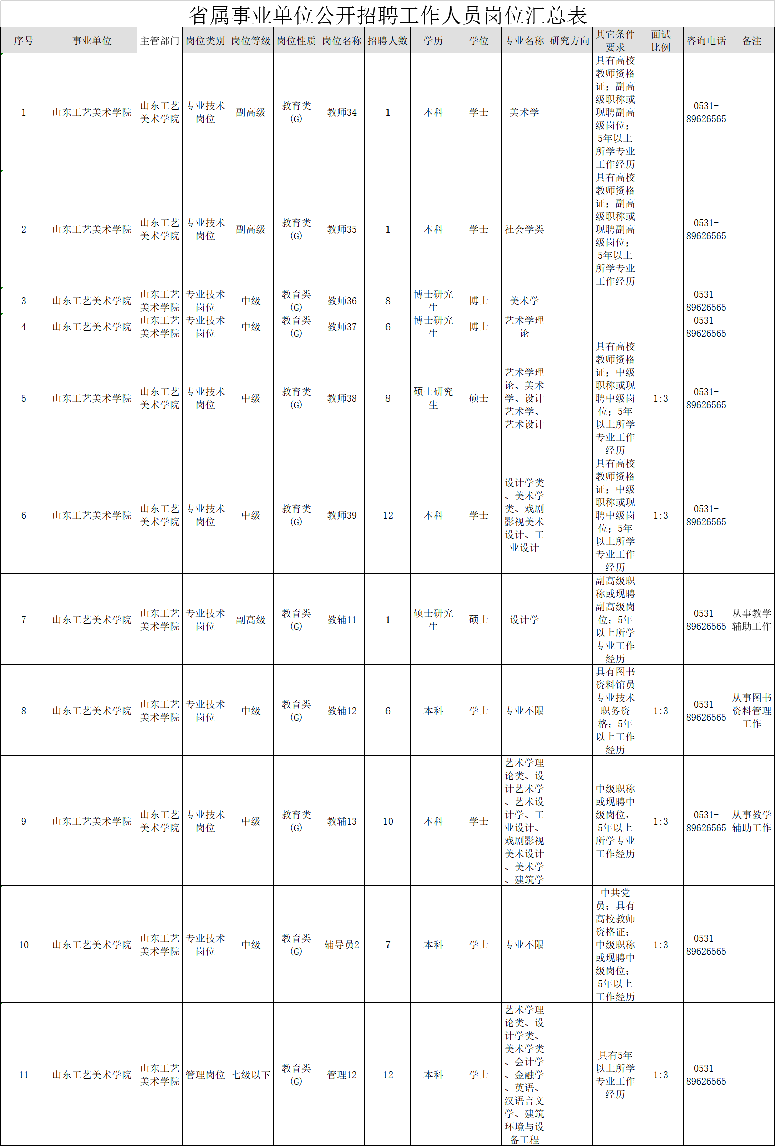 根据省委组织部、省人力资源社会保障厅《关于2019年省属事业单位公开招聘工作人员有关问题的通知》(鲁人社发〔2018〕66号)规定,结合本单位工作需要,我校拟面向社会公开招聘专业技术岗位工作人员60人,管理岗位工作人员12人。具体岗位及条件详见: