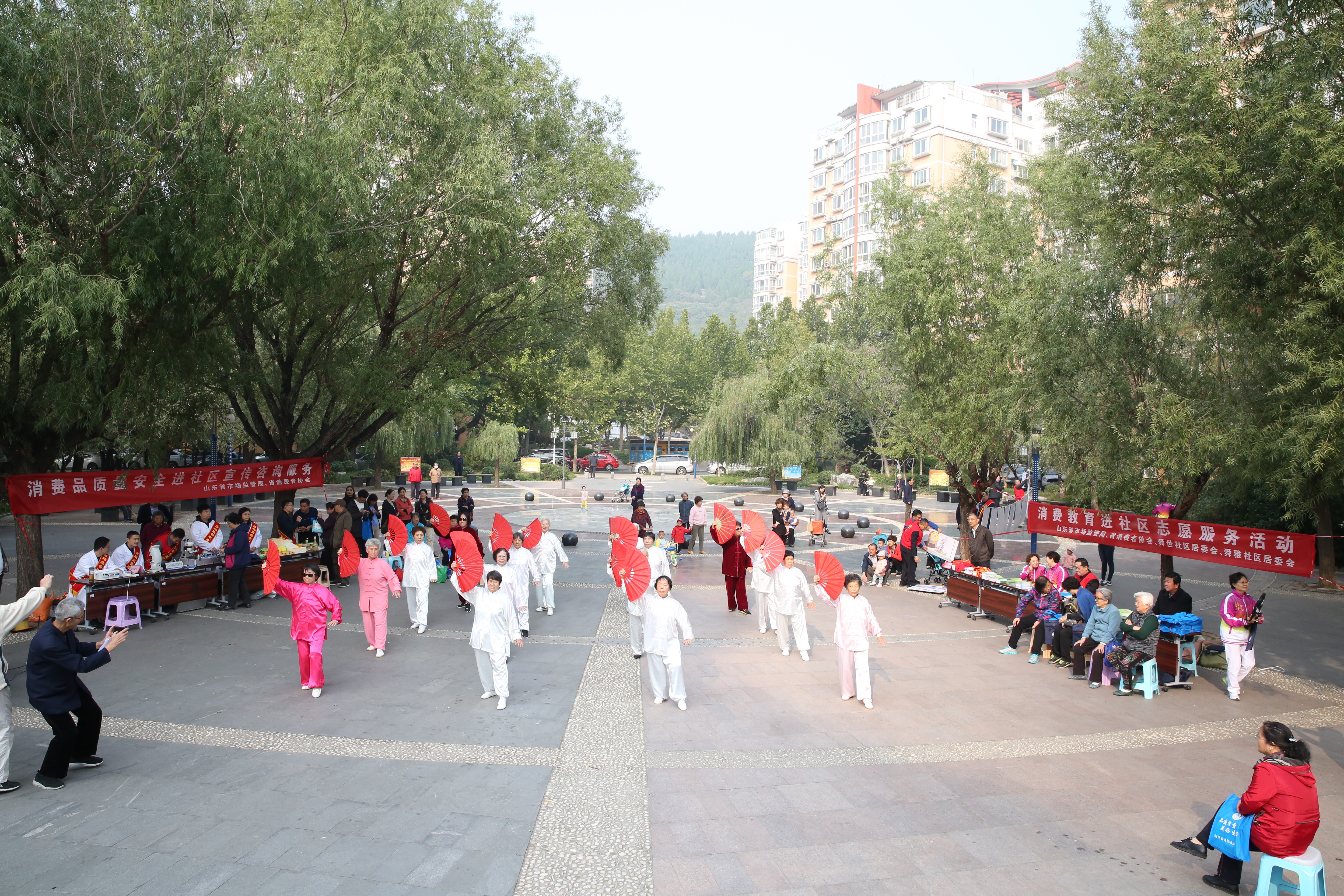 10月18日上午,省市场监管局、省消协联合济南市市中区舜雅社区居委会和舜世社区居委会在舜雅社区广场开展了消费维权及消费品质量安全宣传咨询服务活动。活动现场设置了三个区域:一是宣传咨询服务区,由省市场监督局、省消协工作人员接受居民有关消费维权咨询服务,发放消费维权知识宣传资料;二是消费品质量安全宣传区,由省质检院、省计量院、省蜂蜜协会,为消费者提供金银珠宝、计量仪器、蜂产品等消费品的质量鉴定和知识宣传服务;三是漫画宣传区,现场悬挂一系列消费维权知识漫画,通过消费者喜闻乐见的形式宣传消费维权常识。活动受到了社区居民的热烈欢迎和积极参与,舜雅社区居委会还组织居民在活动中为社区居民表演了大合唱、揉力球、扇子舞等节目。