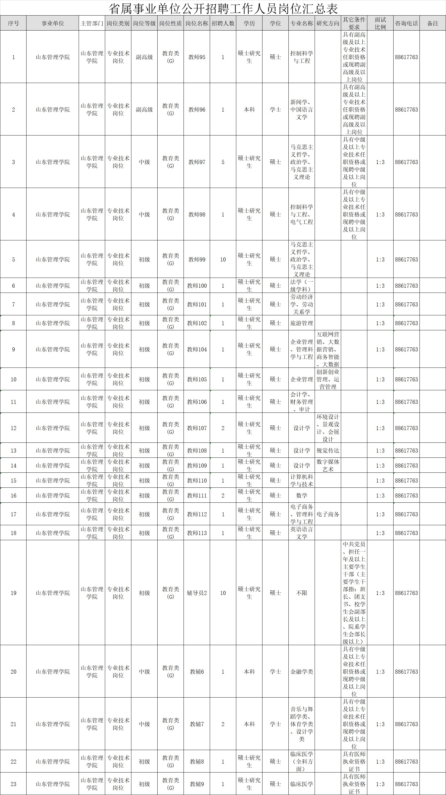 根据省委组织部、省人力资源和社会保障厅《关于2019年省属事业单位公开招聘工作人员有关问题的通知》(鲁人社发﹝2018﹞66号)要求,结合工作需要,山东管理学院拟面向社会公开招聘工作人员48人。