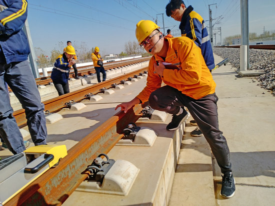 5月下旬,日兰高铁进入静态验收的关键阶段。当时,日兰地区气温普遍增高,临沂地区最高气温更是超过了35℃。负责线路设备验收的侯林和同事们顶着烈日的炙烤,俯身在轨道上,不眨眼睛地洞察“蛛丝马迹”。