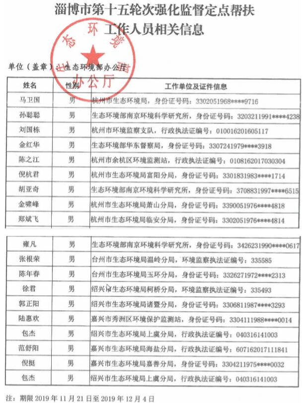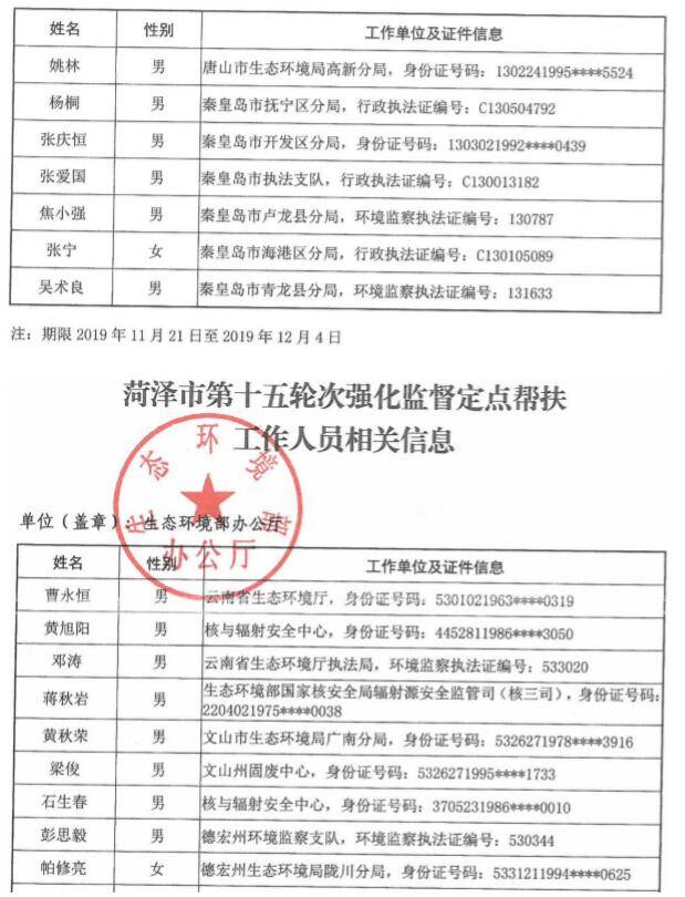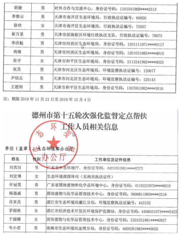 近日,生态环境部发布《大气强化监督定点帮扶工作人员名单公开(第十五轮次)》。2019年11月21日至12月4日,生态环境部抽调人员对山东济南、淄博、聊城、菏泽、滨州、济宁、德州开展第15轮次强化监督定点帮扶工作。