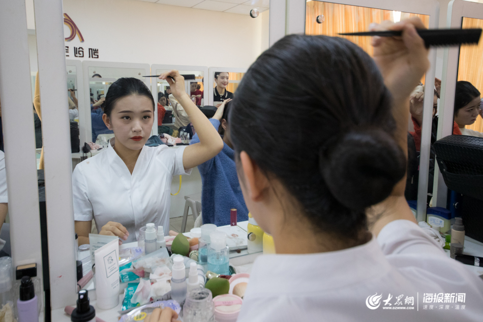 大众网·海报新闻济南11月27日讯(记者 毕胜 孙博洋)在空乘专业培训现场,满眼都是帅哥美女。