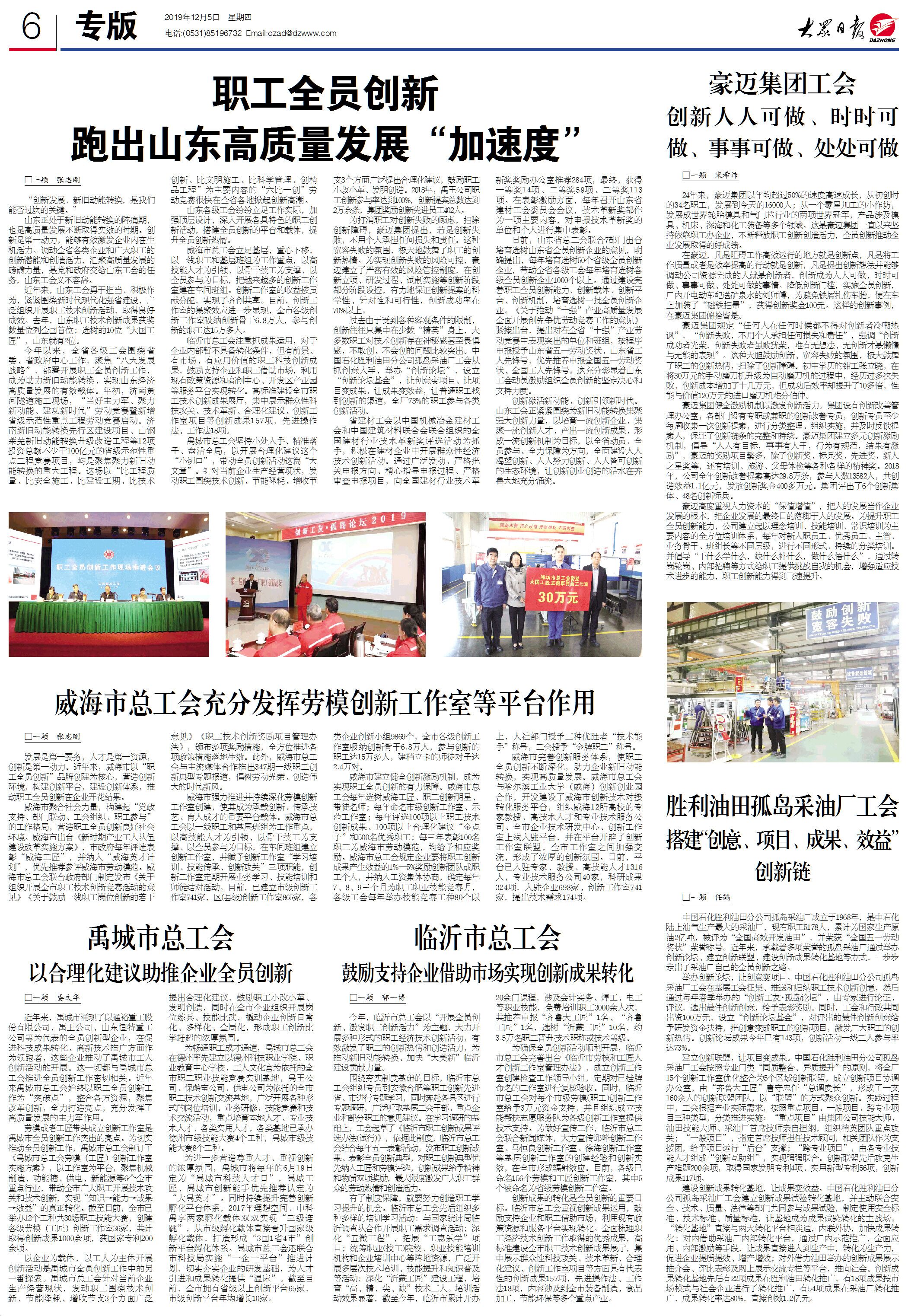 激活新动能,跑出加速度,山东各工会如何引导企业和职工开展全员创新,助力山东“八大发展战略”?