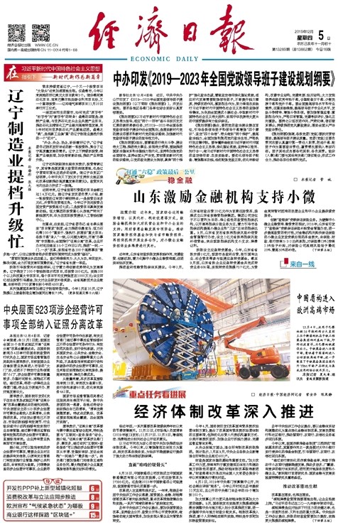 12月5日,山东小微企业发展受到《经济日报》的“点赞”,《经济日报》头版发表《山东激励金融机构支持小微》的文章。