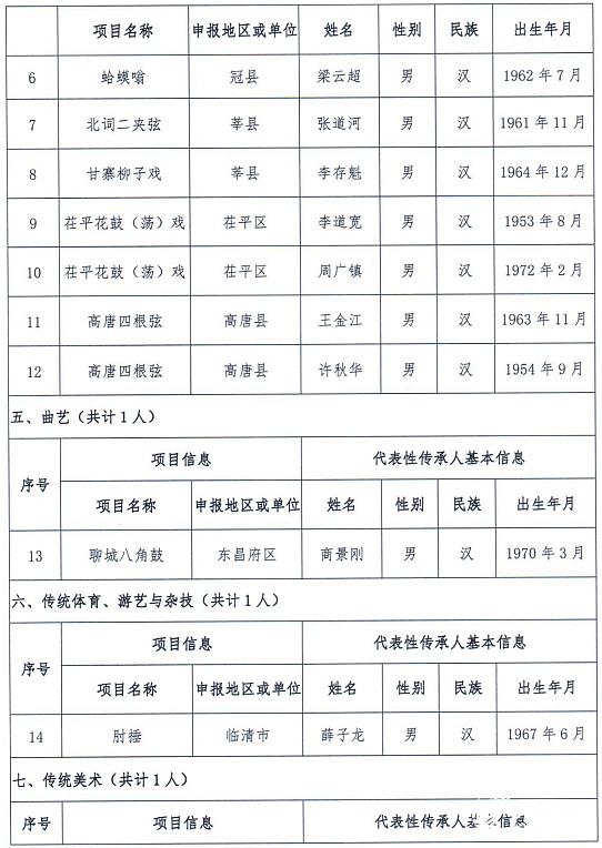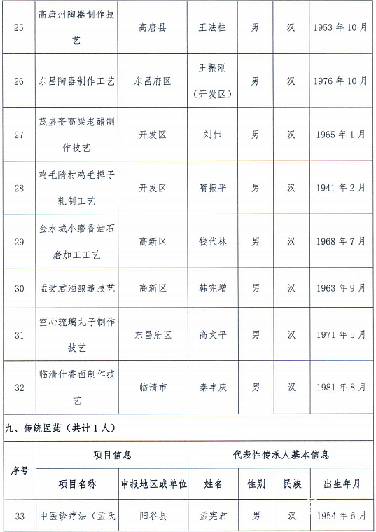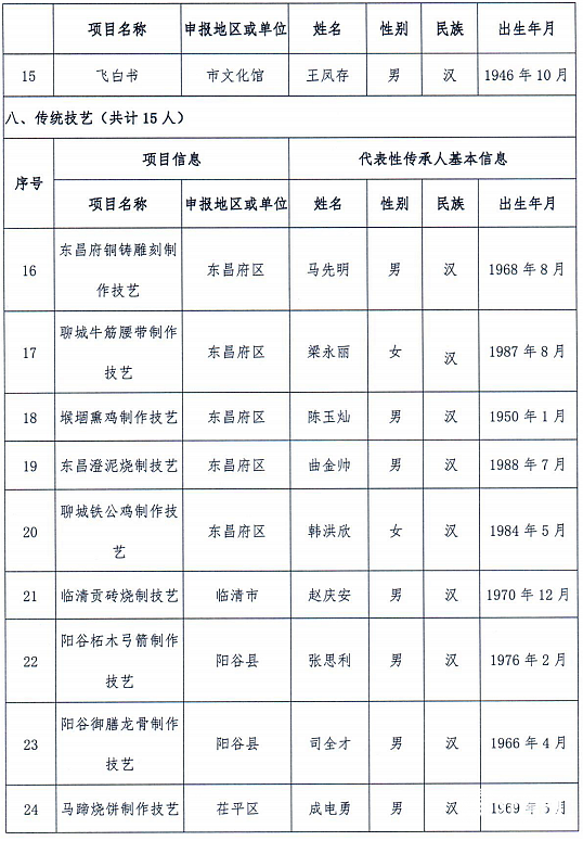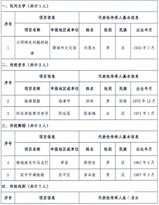 近日,聊城市文化和旅游局公示第五批市级非物质文化遗产代表性项目代表性传承人推荐名单,名单共计35人。(大众日报客户端记者 蒋鑫 报道)