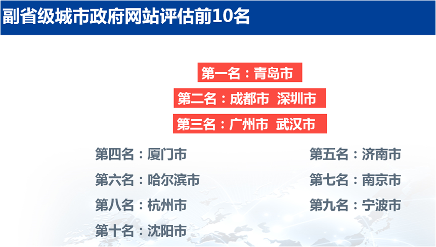全国政府网站绩效评估结果发布,副省级政府网站排名青岛夺魁