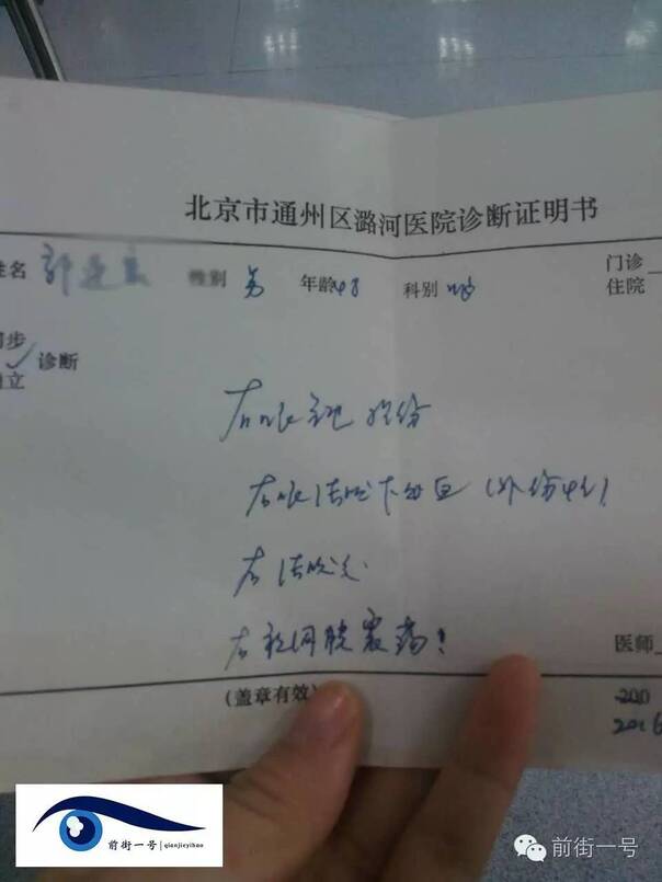 郭师傅还感觉到头晕,郭师傅的妻子称,“医生诊断后说,头晕是因为脑震荡。”