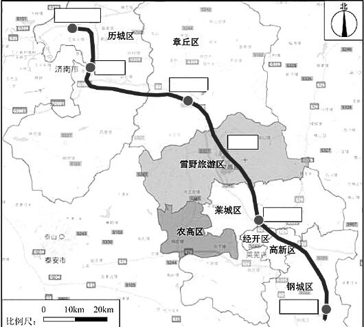 济莱高铁是省会城市群经济圈和济莱协作区建设的重大基础设施项目。从高铁规划图上可以看到,济莱高铁线路整体呈西北-东南走向,自济南东客站向东引出,拐向东南,沿东绕城高速西侧向南至京沪高速以南拐向东,沿京沪高速南侧向东进入章丘区,在章丘三德范村西侧向南进入雪野旅游区,向南经莱芜区、莱芜经开区、莱芜高新区,止于济南市钢城区钢城东站,正线长度117.155km。