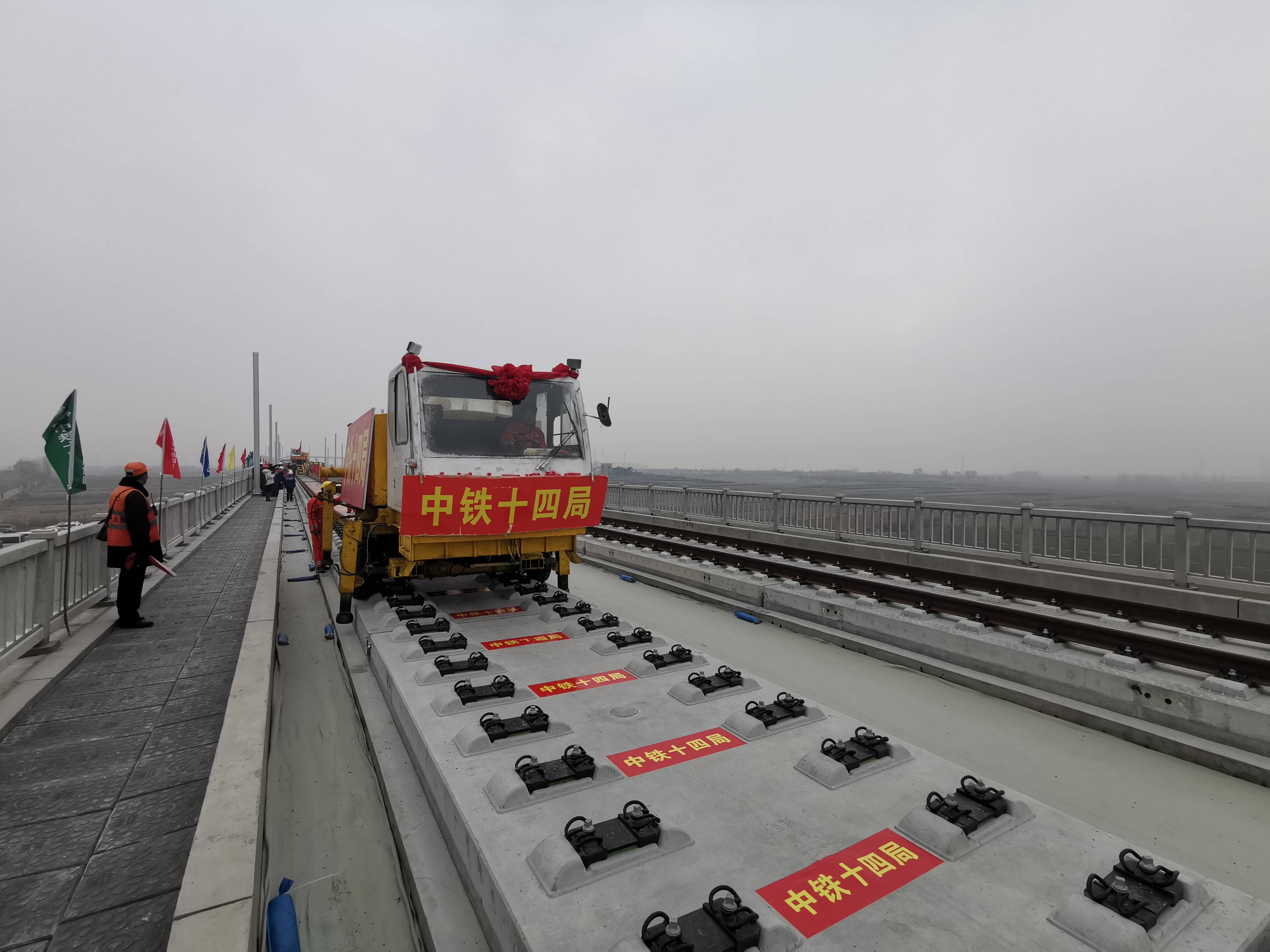 12月7日,在潍莱高铁莱西特大桥施工现场,随着一列铺轨机车将两条500米长钢轨稳稳地推送到位,潍莱高铁长轨铺设正式开始,这也标志着该项目正式进入铺轨施工阶段。