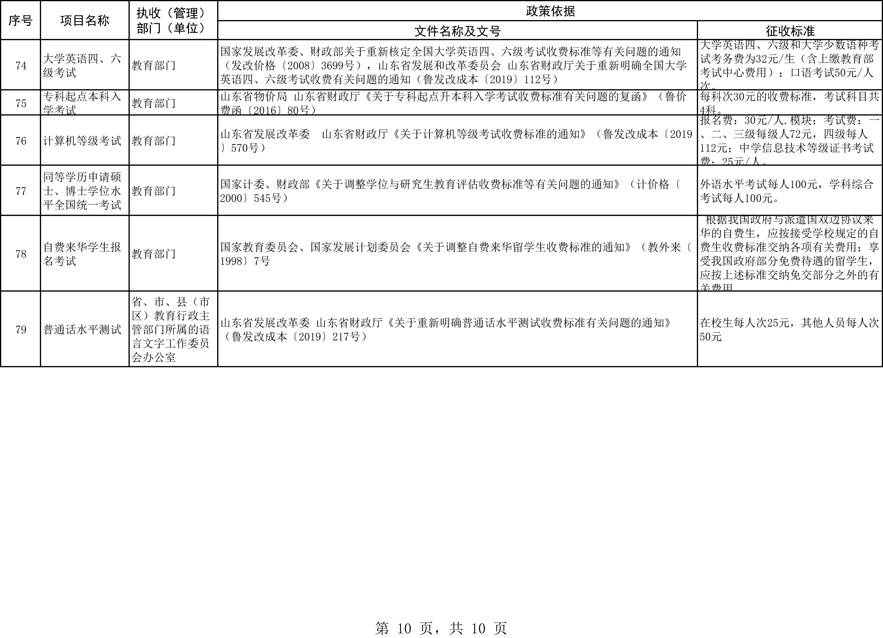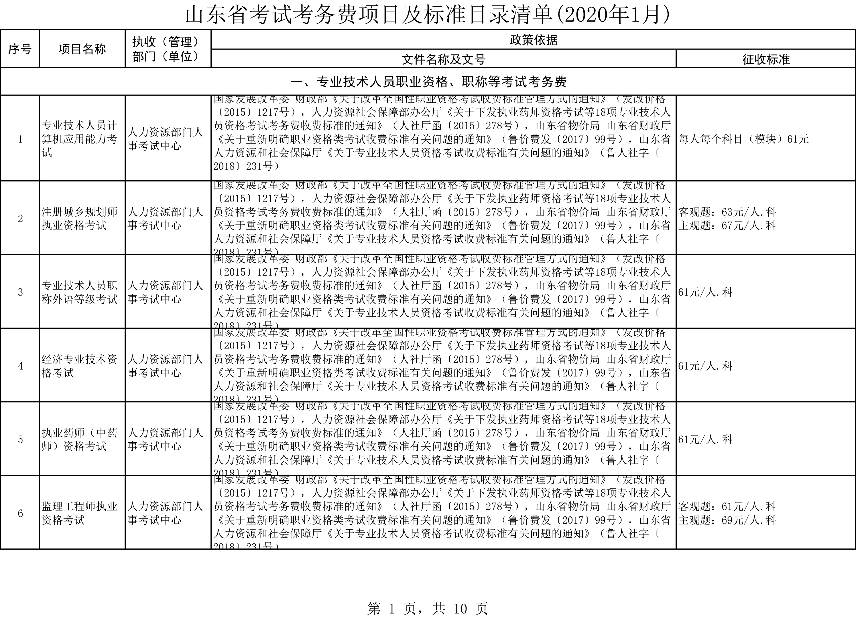 2020年1月2日,山东省发展和改革委员会发布了《山东省考试考务费项目及标准目录清单》,为了规范收费管理,提高收费透明度,山东省发展改革委对现行收费标准进行梳理和完善,现予以公布,请社会监督。