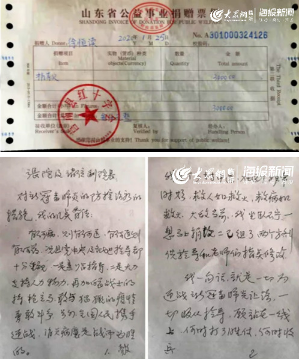 1月26日,临沂78岁首届“最美乡医”徐恒读给莒南县坊前镇卫生院院长张健徐恒读递上了一封“请战书”,上面有几句话这样写道:“我是个乡村医生,在这个非常时期,救人如救火,救病如救火,大敌当前,我坐卧不宁,一想马上捐款,二已经组了两个方剂供领导和老师们指点修改。我一句话就是一切为迎战新(型)冠(状病)毒肺炎让路,一切服从领导,愿站在一线上,何时打了胜仗,何时收兵!”