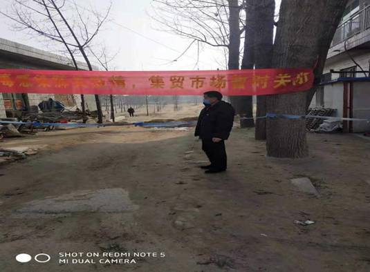 安排完防疫工作后,又一件棘手的事情摆在王伟的面前。小魏庄集贸市场通常大集当天能够汇集附近4个村的1000多人,人流量大,必须关闭。1月28日,王伟书记第三次召开村两委会议,研究小魏庄集贸市场封闭的具体事宜。当地村民赶大集的习俗很浓厚,尤其是刚过年,王伟和村两委当机立断,雇大车拉了9车土,封锁了集市,并悬挂好已经打印好的条幅。