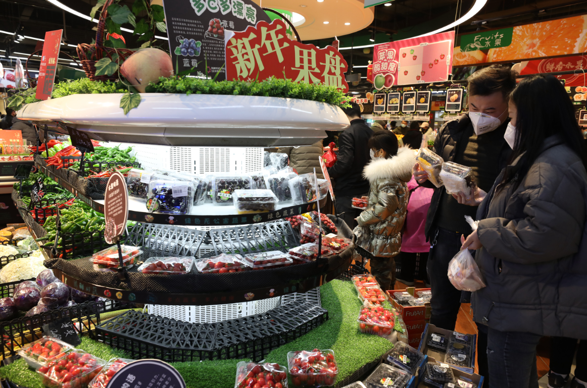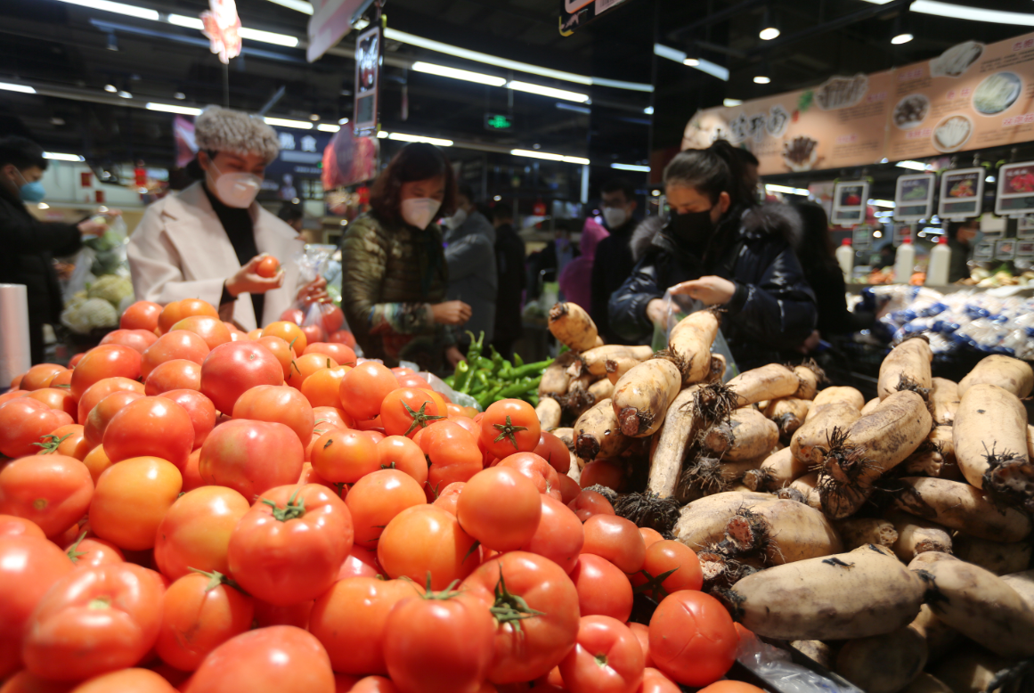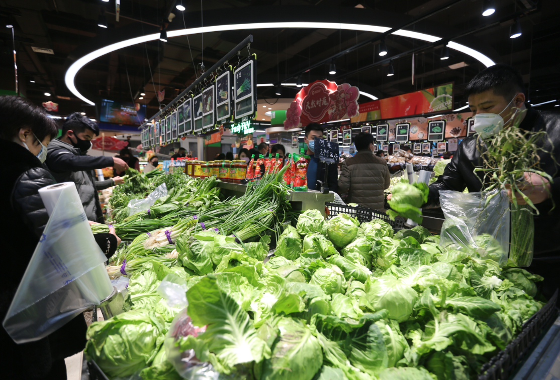 2月3日,临沂市一家大型超市,市民正在选购蔬菜,可以看到菜品种类丰富,价格与平日相近。
