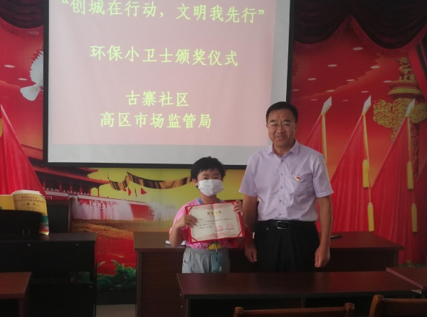 活动结束后,市场监管局副局长汤永毅向20名小朋友颁发“环保小卫生”荣誉证书,鼓励他们从小热爱国家、热爱公益,为创城工作和精致城市建设添砖加瓦。