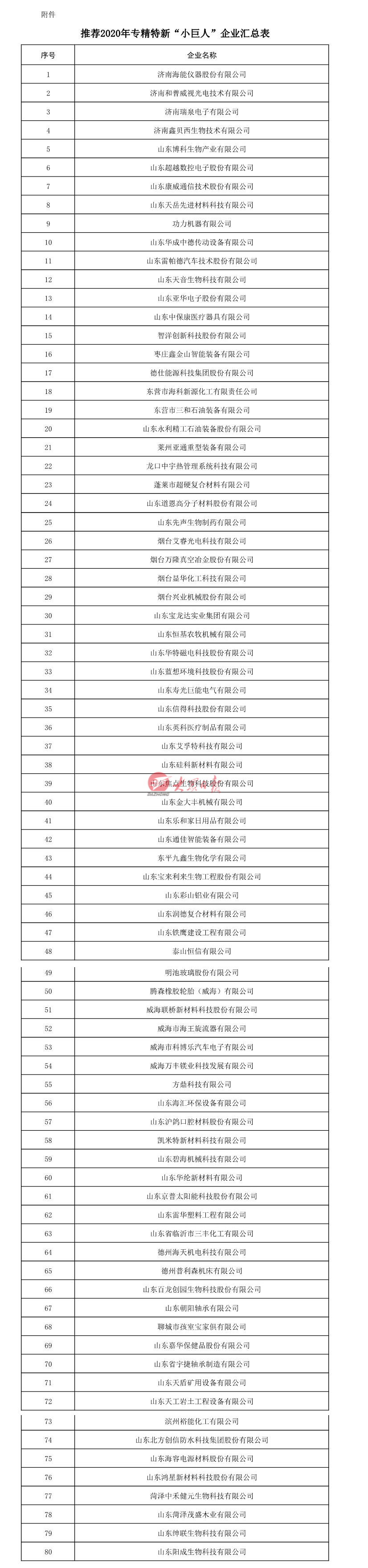 8月17 日,山东省工业和信息化厅网站发布《第二批国家专精特新“小巨人”企业推荐名单公示》。