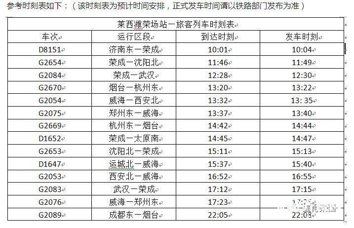 潍莱高铁将于11月26日开通 莱西站最新列车时刻表来了