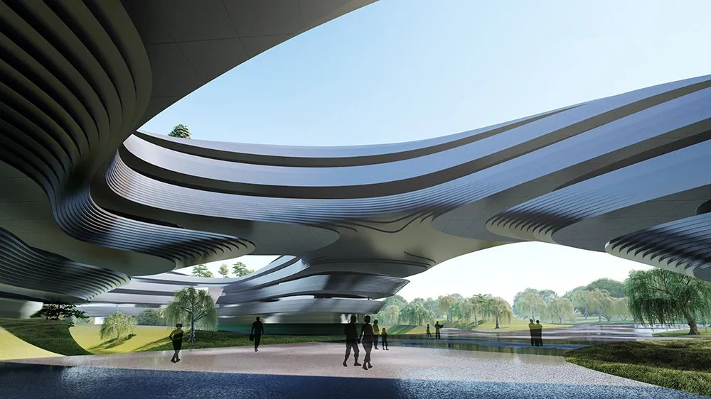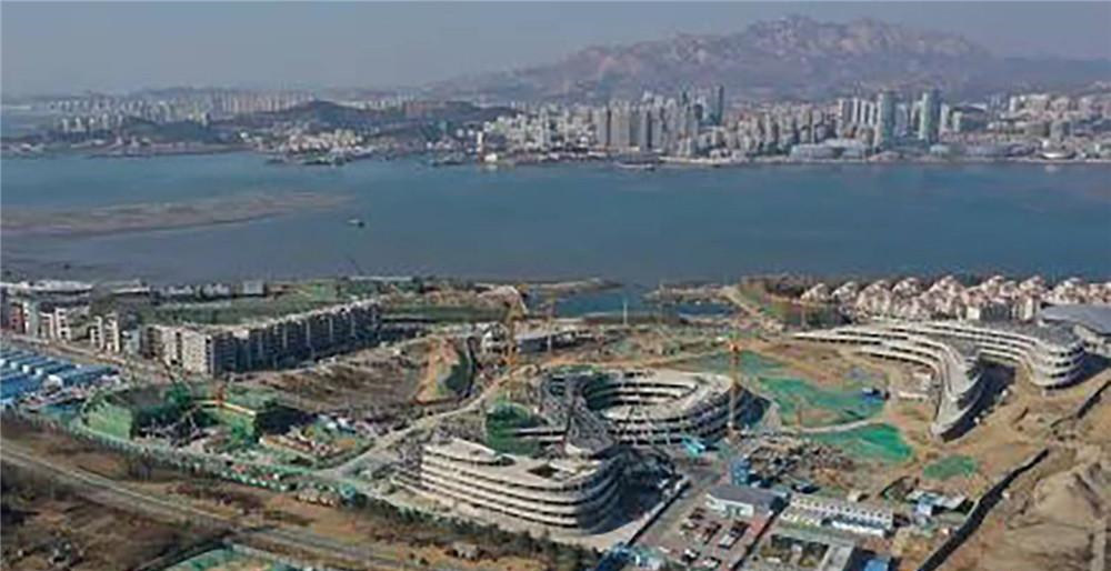 中央美术学院青岛校区总投资约13.48亿元,总建筑面积11.9万平米,建设教学综合楼、教工公寓、宿舍综合楼、礼堂四部分。项目由中央美术学院设计团队领衔设计,方案主要体现时代意识、未来学院、开环大学三个主导思想,建筑形体如“莫比乌斯环”般循环往复,设计理念正是通过这种空间的重叠穿插引导不同学科之间的深度交融,从而探索不同学科之间交流共享的教学模式。