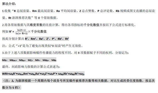 澎湃政务指数榜是对入驻的政务机构进行长期采样分析,综合考察“阅读量、责任度、稿件质量、被澎湃推荐次数”等指标,通过对各指标权重进行动态赋值,从而得到综合考察各维度的影响力指数,得出榜单的排名。