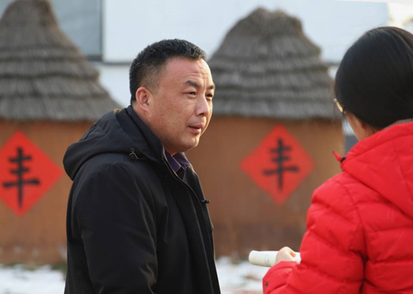 蒙阴县垛庄镇古泉村党支部书记刘元华和记者交谈。