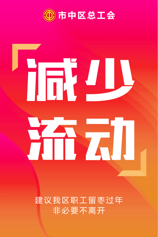 但当前防控形势严峻复杂,返乡路途遥远,接触人员复杂,极易发生新冠病毒交叉感染。为了广大职工的生命安全及健康福祉,确保大家度过一个欢乐祥和的春节,市中区总工会向全区职工发出倡议: