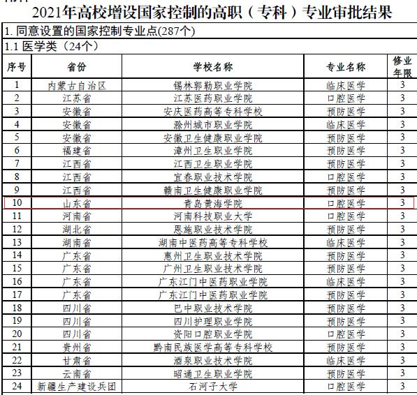 通过梳理,记者看到,我省这些申请增设国家控制的高职(专科)专业点获批: