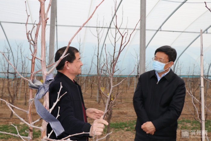 省农科院沾化冬枣新模式种植科研基地于去年4月份落户冯家镇。该基地依托冯家镇大流村沾冬2号冬枣技术示范园建立起48亩试验田,实施冬枣宽行密植新模式新技术科研示范推广。佘春明走进冬枣大棚,与正在管理冬枣树的枣农张亦明攀谈起来。他指出,沾化冬枣确实让老百姓致富收益,但作为国家地理标志产品,沾化冬枣品牌应叫得更响。要结合乡村振兴和三农工作,切实提高二代冬枣的种植面积,大力发展和整体推进设施农业,做大做强冬枣产业集群。