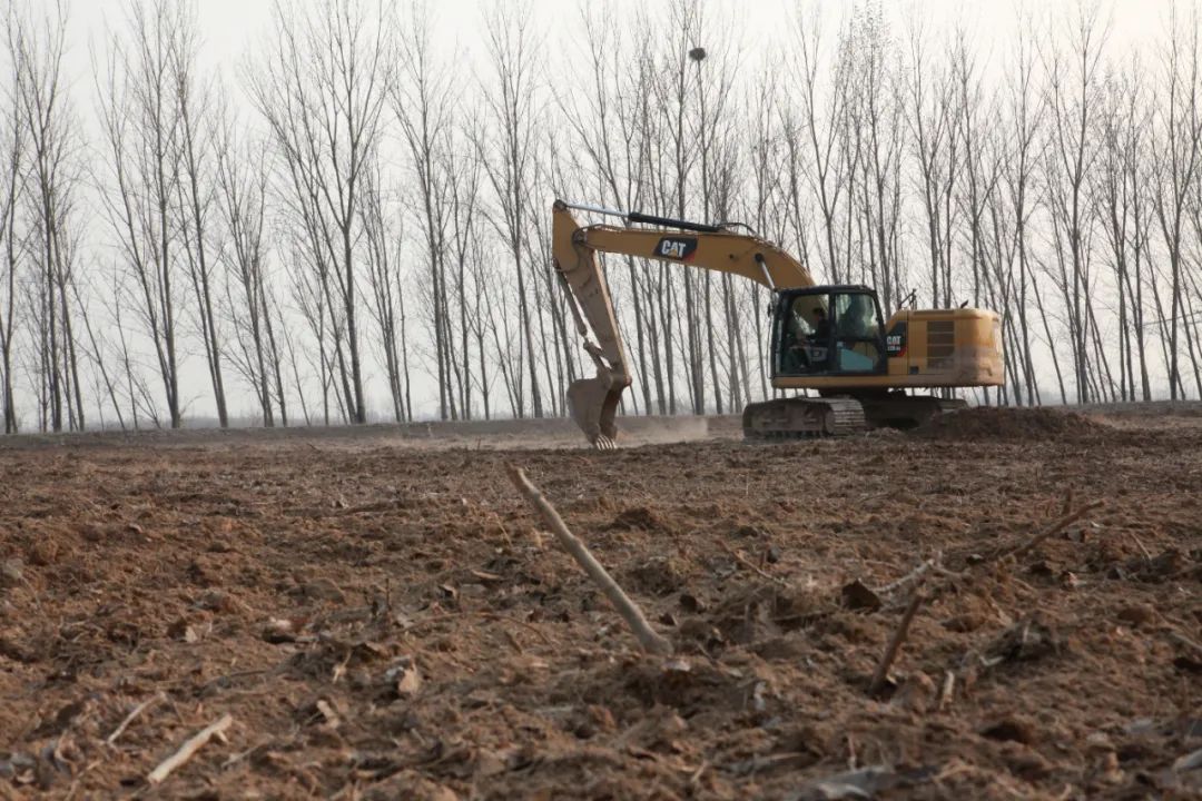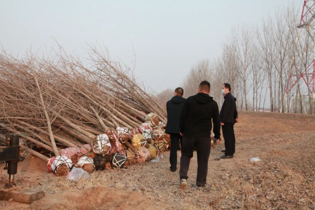 位于滨州邹平市码头镇、台子镇境内的黄河淤背区637.35亩绿化提升工程现场机器轰鸣、人头躜动,平整土地、放线、定点、打井、挖坑一派繁忙景象。