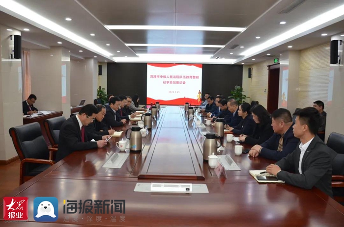 参观结束后,菏泽中院举行座谈会,向大家汇报了前期队伍教育整顿开展情况,征求人大代表、政协委员、工商联人士、群众代表等对法院队伍教育整顿的意见建议。大家结合各自领域,围绕队伍教育整顿、优化营商环境、加强法治宣传等方面畅所欲言,对法院审判工作及开展队伍教育整顿提出了18条意见建议。