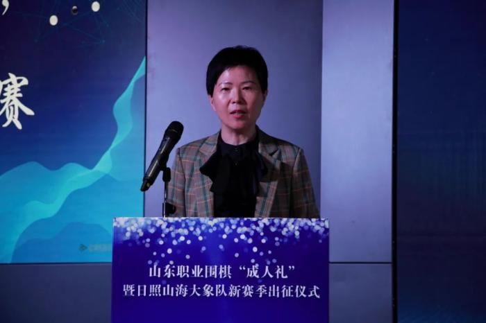日照市副市长林彦芹在致辞时表示,日照市委、市政府高度重视体育发展,正积极筹办山东省第25届运动会、创建全国全民运动健身模范市,建设国家体育消费试点城市,加快打造现代化海滨体育名城。日照市作为“中国围棋之乡”,有着深厚的群众基础,全市有30多万围棋人口,承办过中国围棋大会等重大围棋赛事,具有丰富的办赛经验和浓厚的围棋文化氛围。去年日照山海大象围棋队在围甲联赛中一路披荆斩棘,最终荣获中国围棋甲级联赛亚军,让日照围棋名扬全国。围棋运动厚积薄发,蔚然成势。山海大象围棋队即将出战新赛季、踏上新征程。日照市将全力做好比赛的服务保障工作,做好“围棋+”,打造好日照体育的围棋赛事矩阵,推动围棋普及发展,将围棋打造成宣传推介日照、展示日照形象的平台,为全省围棋运动的发展贡献日照力量。