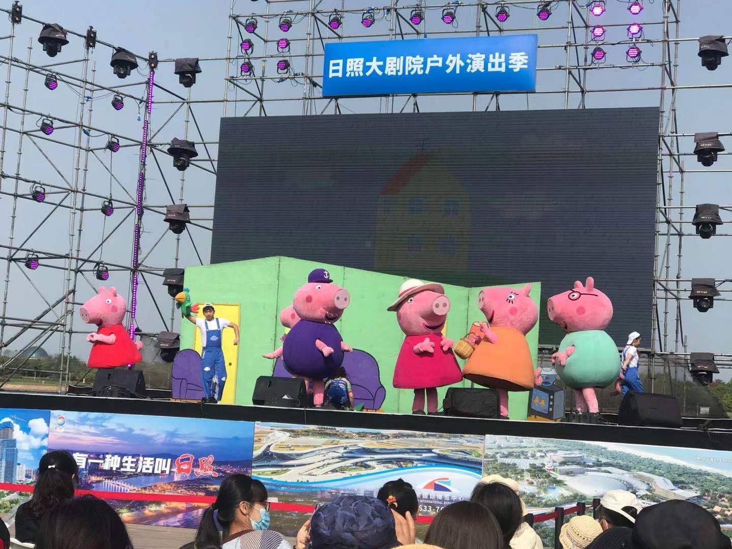 5月9日,《小猪佩奇舞台剧——完美的下雨天》在日照大剧院户外舞台(太阳广场)精彩上演。母亲节当天,牵上爸爸妈妈的手,与佩奇和乔治欢乐互动——这场亲子舞台剧吸引了众多的家庭观看。