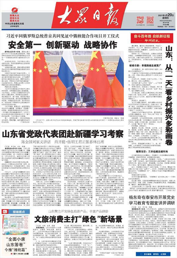 大众日报济南讯 5月19日是第11个中国旅游日,主题是“绿色发展 美好生活”,山东16市共推出222项重点活动及346项惠民政策,主打地方绿色资源、生态资源串联产品,推广“无接触”出游方式,与广大游客分享绿色发展带来的旅游红利。