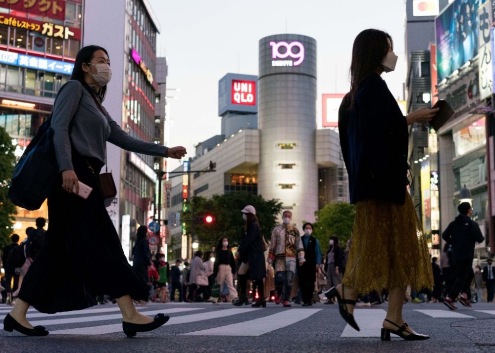 4月23日,人们佩戴口罩走在日本东京涩谷街头。(新华社发,克里斯托弗·朱摄)