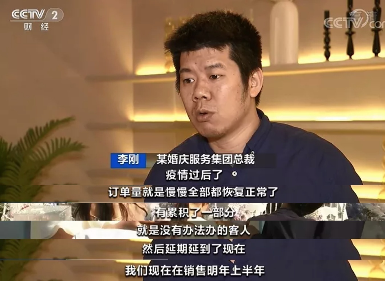 某婚礼策划创始人 李岩:我们今年平均的订单水平跟去年比提升了15%-20%的客单价,所以客户对于婚礼的这种刚需的需求,仍然还是很旺盛的。