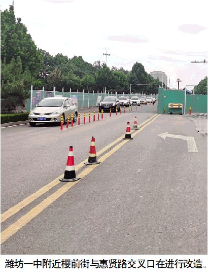 6月2日,记者驾车前往潍坊一中。走到樱前街与惠贤路交叉口时看到,此处樱前街正在进行道路改造提升,导致路口交通秩序受影响。受宝通街快速路改造工程的影响,宝通东街与志远路交叉口西侧的主路目前都在进行改造施工,只能走两侧辅道。高峰时段路面交通会比较拥堵,需要注意。